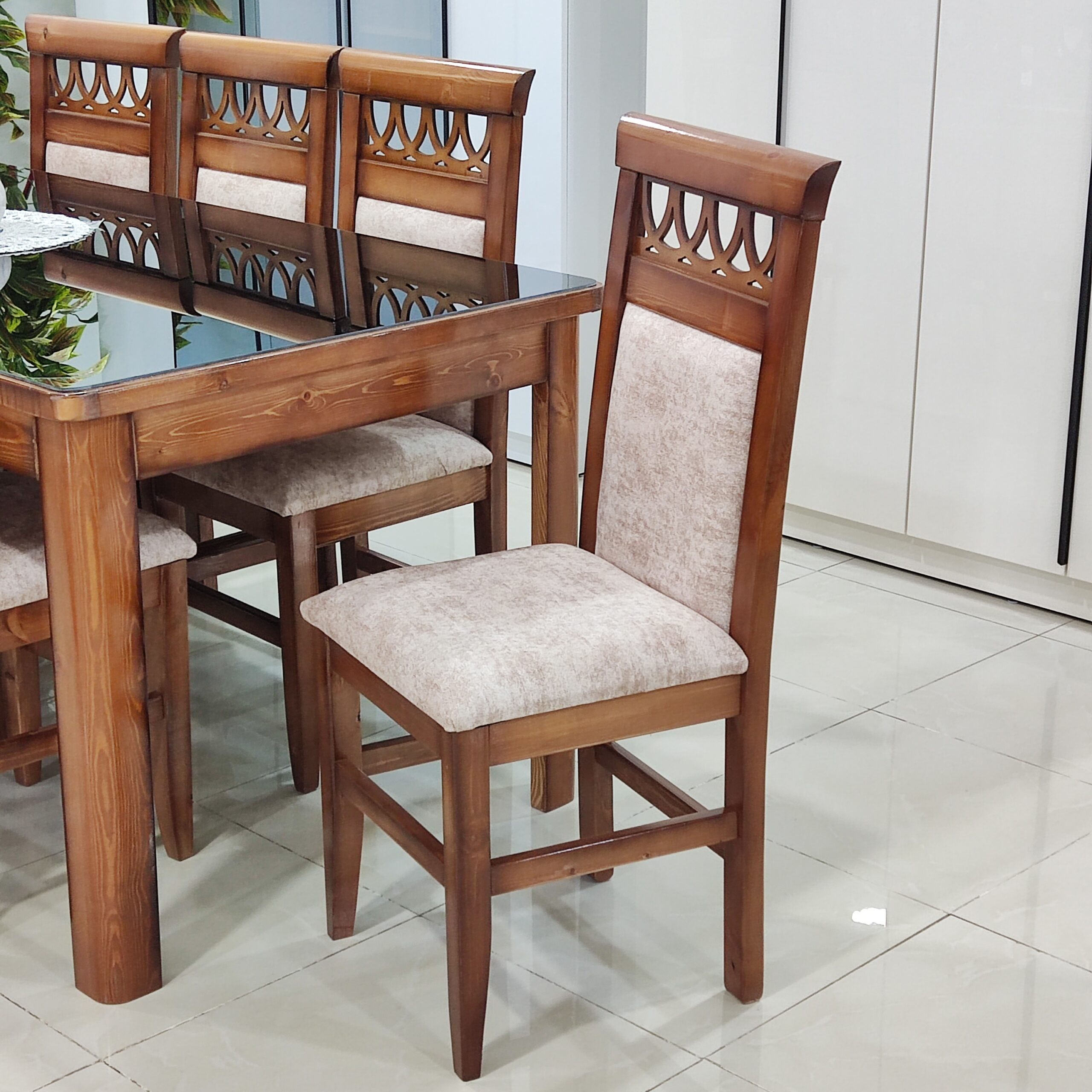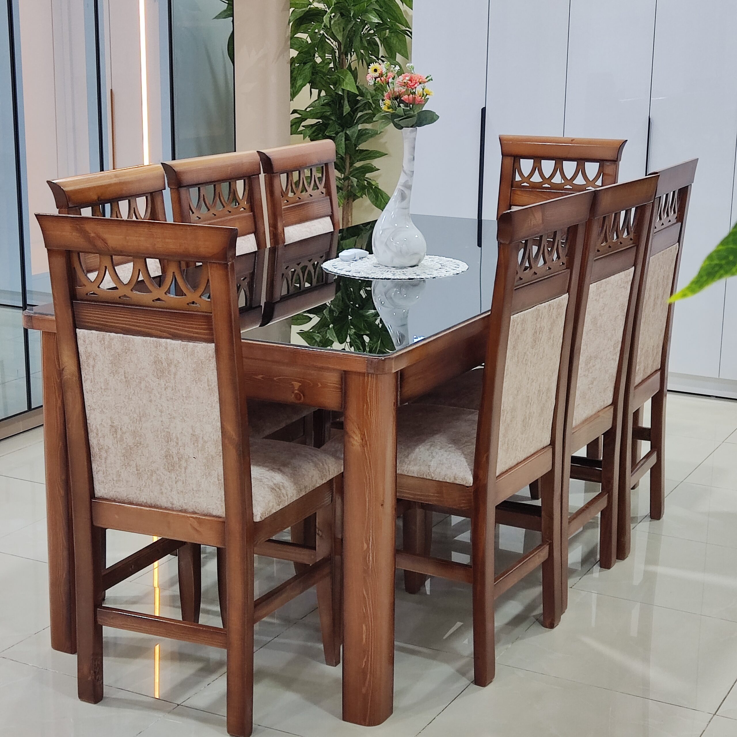 طاولة صالون لللأكل – 8 كراسي بالخشب الأحمر 190سم /90سم